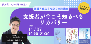 📢【オンライン】支援者が今こそ知るべきリカバリー 〜経験と臨床をつなぐ実践講座〜(11/7)